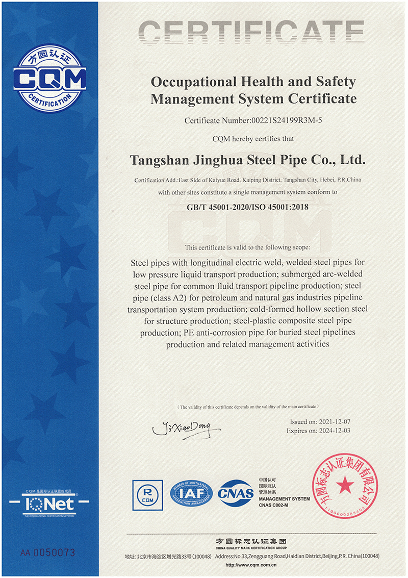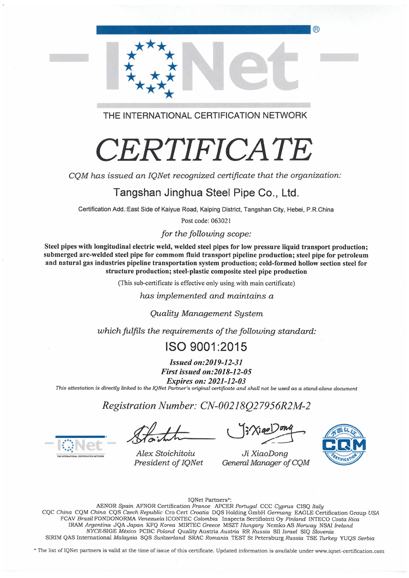 WELCOME TO Tangshan Jinghua Steel Pipe Co.,Ltd.